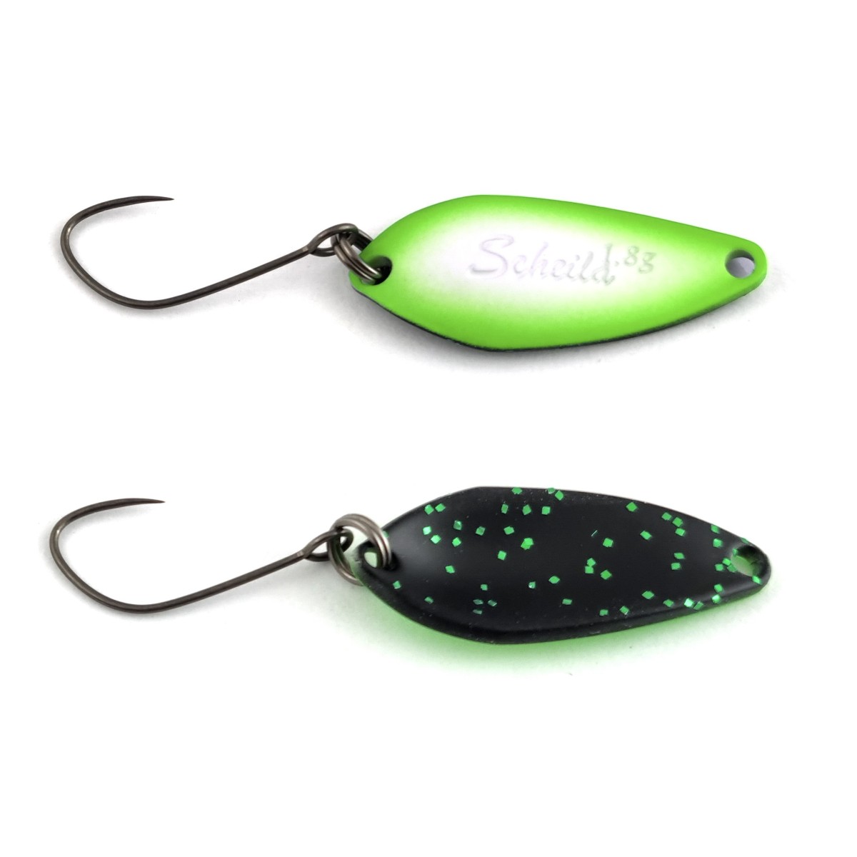 Lo Spoon Scheila è è un artificiale studiato per posizionarsi come gamma delle Esche Valkien come una via di mezzo tra i pesanti Hi-Burst e il leggero spoon da partenza IceFlake